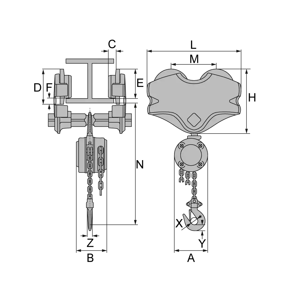 Alu-Kombination Handkettenzug-Laufkatze HZX1