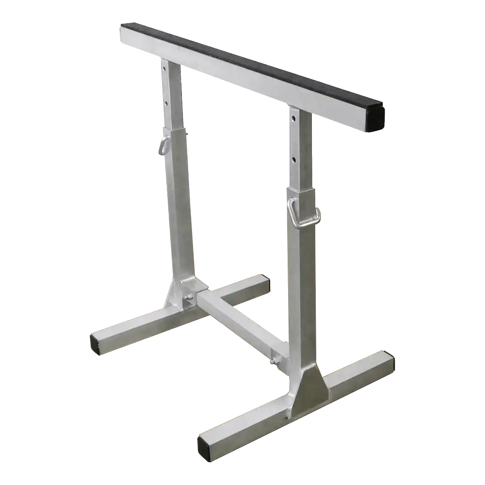 Die Höhe kann einfach über Bolzen verstellt werden und die Auflagefläche ist serienmäßig mit einem Antirutschbelag ausgestattet.