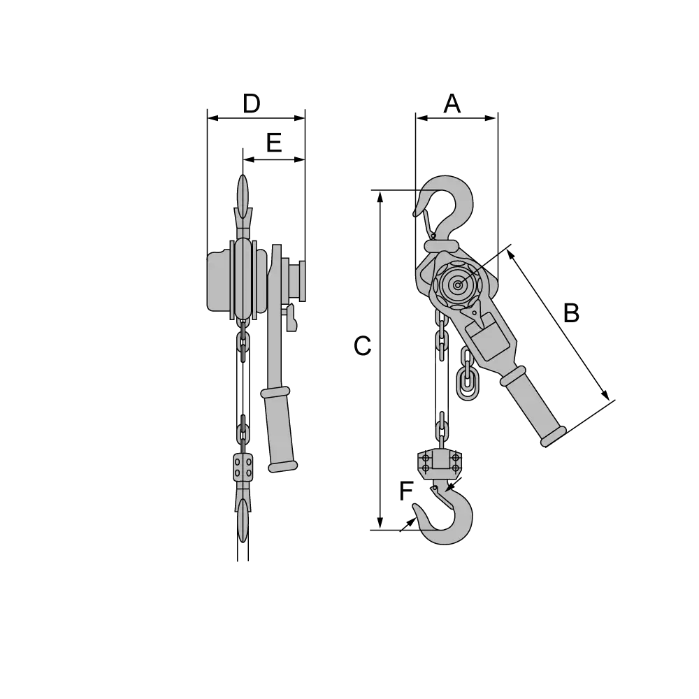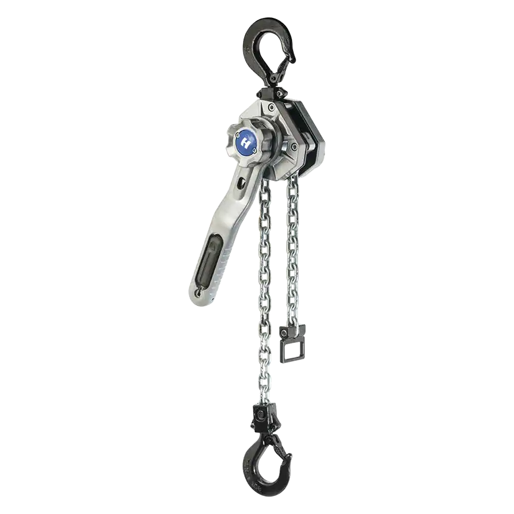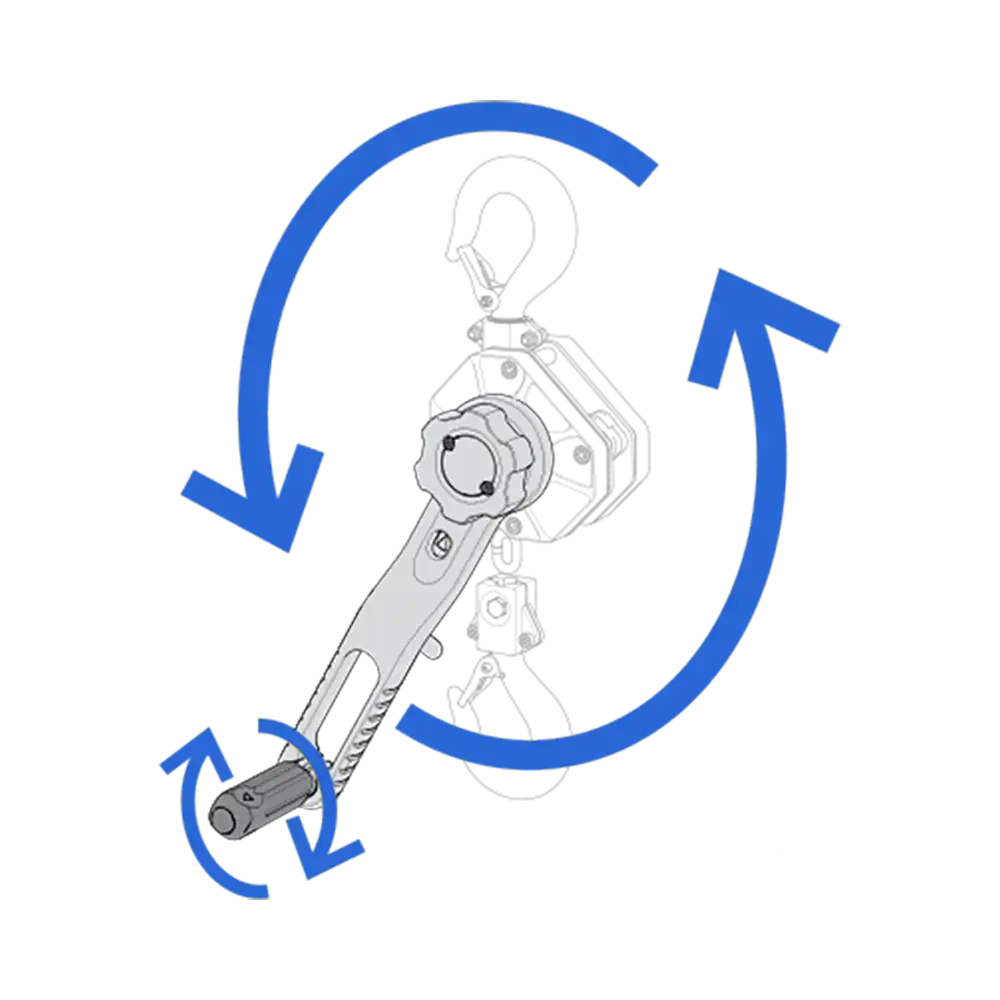 Artikel | Tragfähigkeit kg | Ketten-stränge | kleinste Bauhöhe mm | Hebellänge mm | Hebeldruck daN | Hub pro Drehung m | Gewicht* kg |