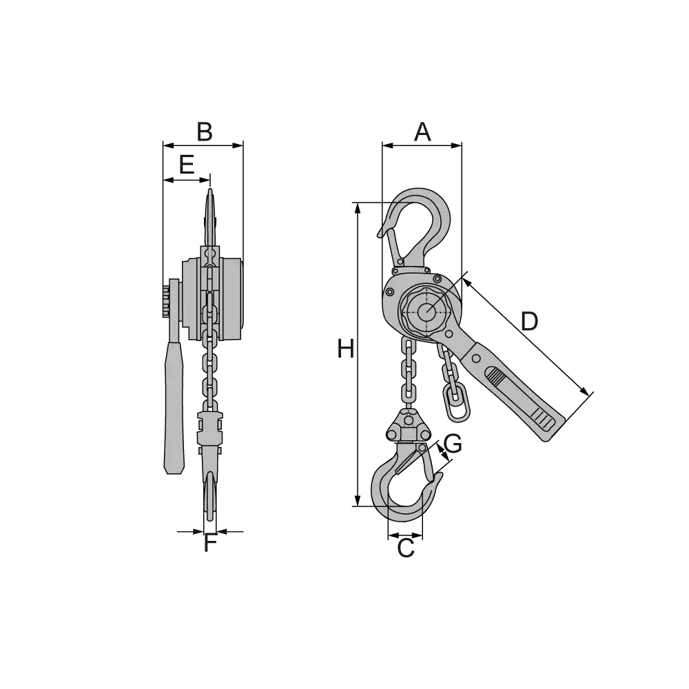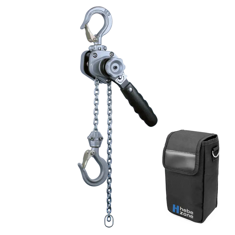 Artikel | Tragfähigkeit kg | Ketten-stränge | kleinste Bauhöhe mm | Hebellänge mm | Hebeldruck daN | Gewicht* kg |