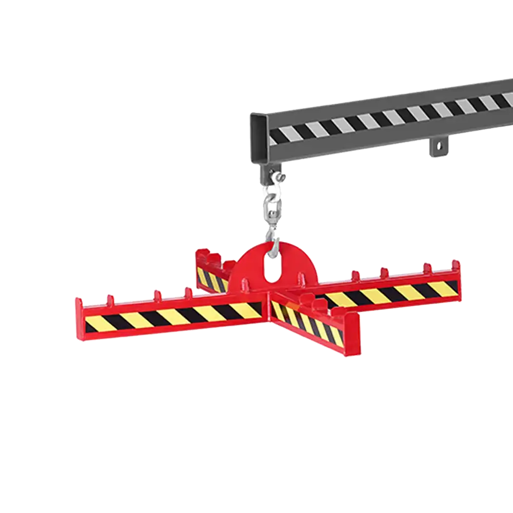 Für den schnellen, einfachen Big-Bag-Transport mittels Kran oder Kranarm. Die Kreuztraverse besteht aus einer geschlossenen Rohrkonstruktion und verfügt über eine mittig angebrachte Aufhängeöse und gelb/schwarze Warnstreifen gemäß Kennzeichnungspflicht ASR A 1.3.