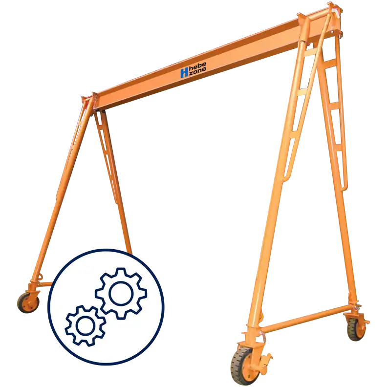 Diese Bockkrane können mit einem Stapler oder Seilzügen schnell aufgebaut werden und sind überall dort zuhause, wo nur vorübergehend ein Kran benötigt wird oder bauliche Gegebenheiten nicht verändert werden sollen.