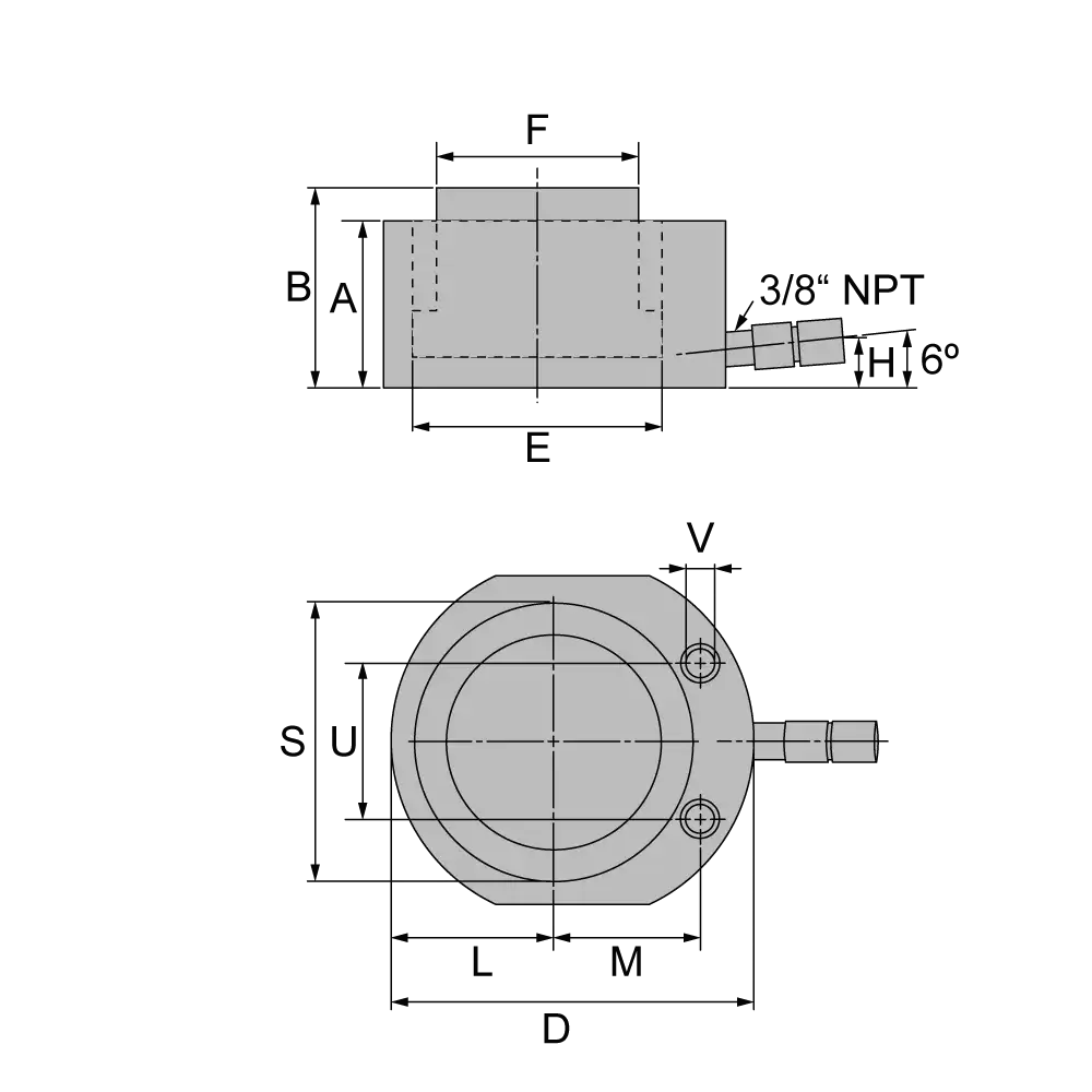Artikel | Presskraft | Presskraft | Hub | A | B | D | E | F | H | L | M | S | U | V | Kolbenfläche | Ölvolumen | Gewicht |