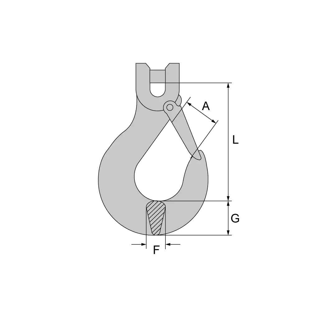 Artikel | für Kette mm | Tragfähigkeit kg | L | A | F | G | Gewicht kg |