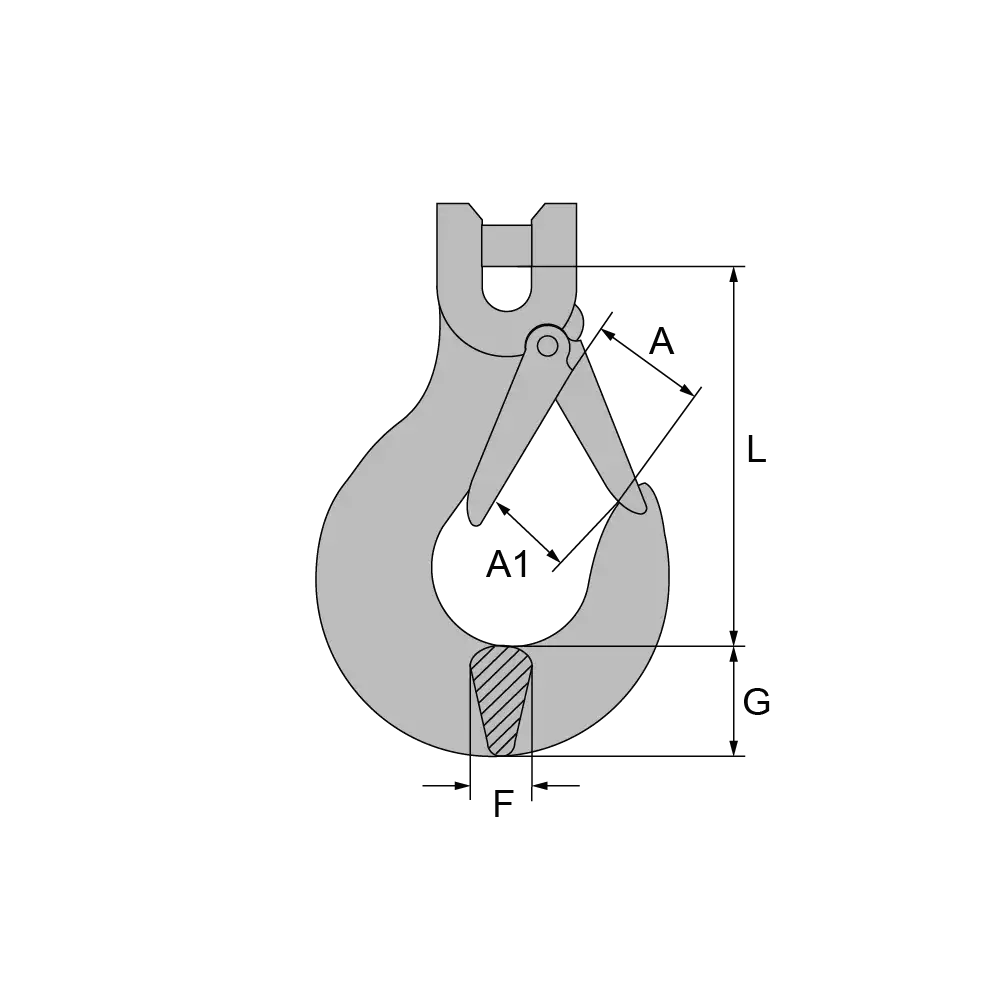 Artikel | für Kette mm | Tragfähigkeit kg | L | A | A1 | F | G | Gewicht kg |