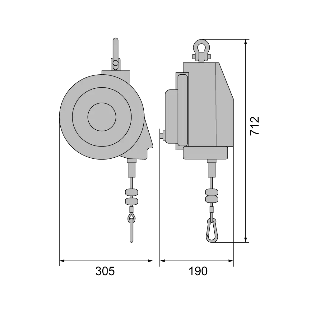 - einstellbarer Seilrücklaufweg (Seil-Stopp)