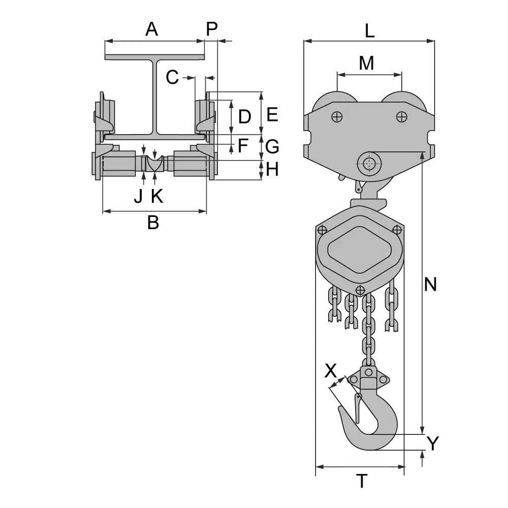 Handkettenzug-Kombi Typ HZE mit Schiebelaufkatze