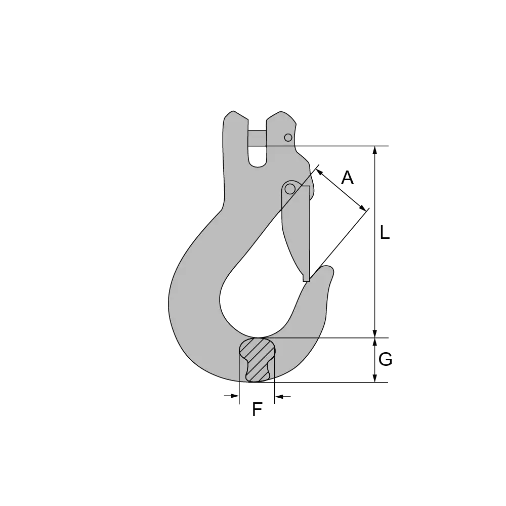 Artikel | für Kette mm | Tragfähigkeit kg | L | A | F | G | Gewicht kg |