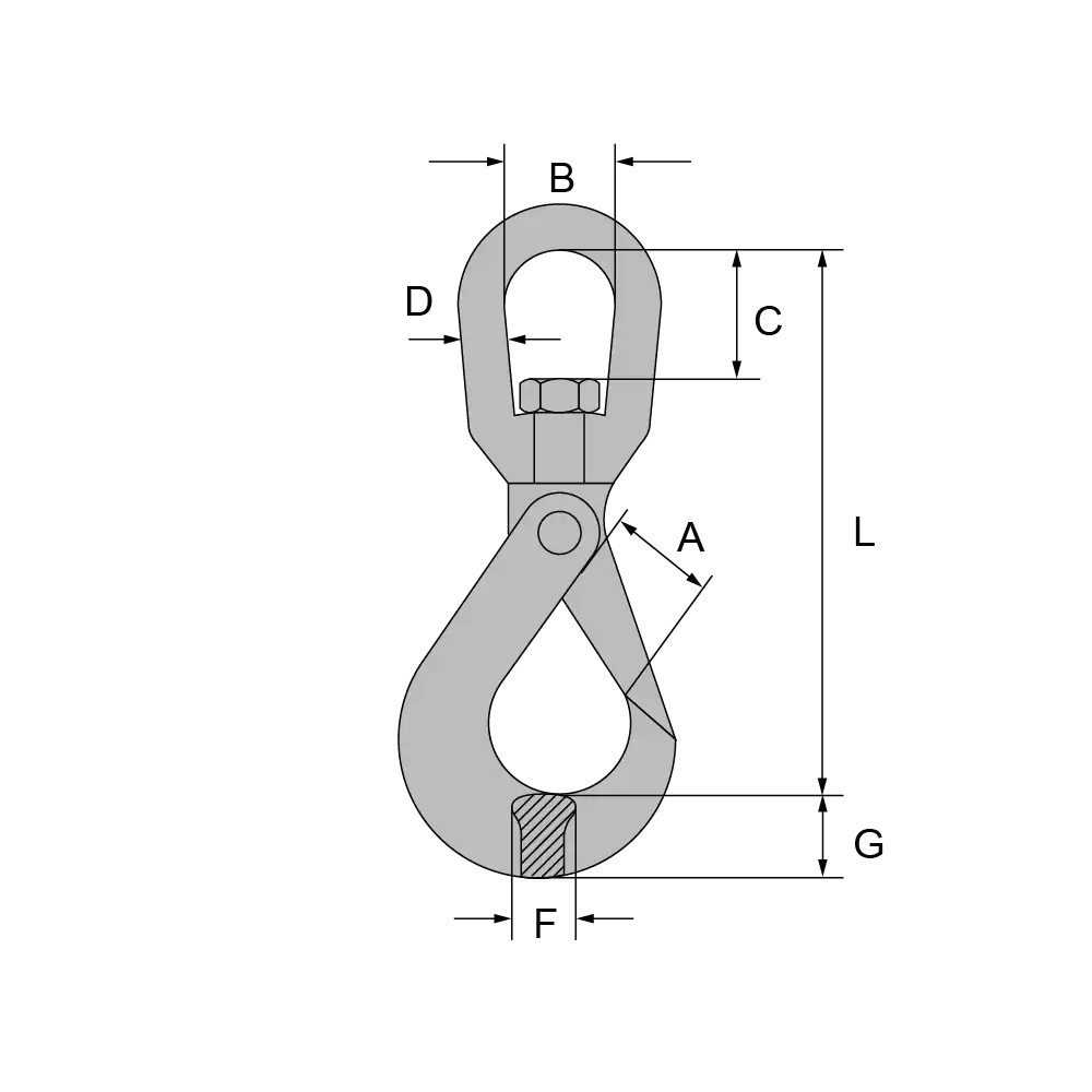 Artikel | für Kette mm | Tragfähigkeit kg | L | A | B | C | D | F | G | Gewicht kg |