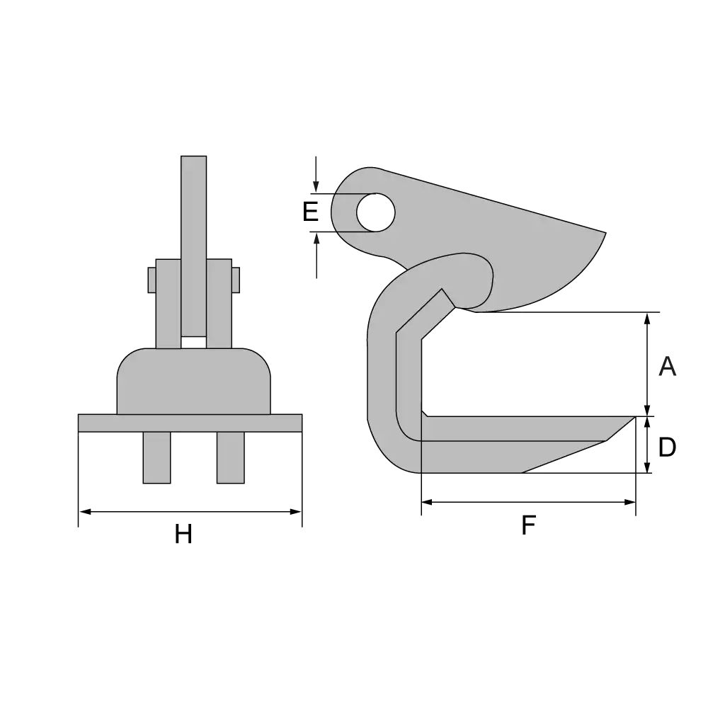 Artikel | Tragfähigkeit kg | Greifweite (A) | D | E | F | H | Gewicht kg |