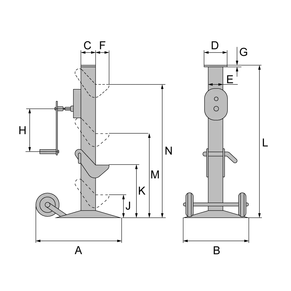 Artikel | Tragfähigkeit | Hub | A | B | L* | C | D | E | F | G | H | J* | K* | M* | N* | Kurbeldruck | Hubweg ** | Hubweg ** | Gewicht |
