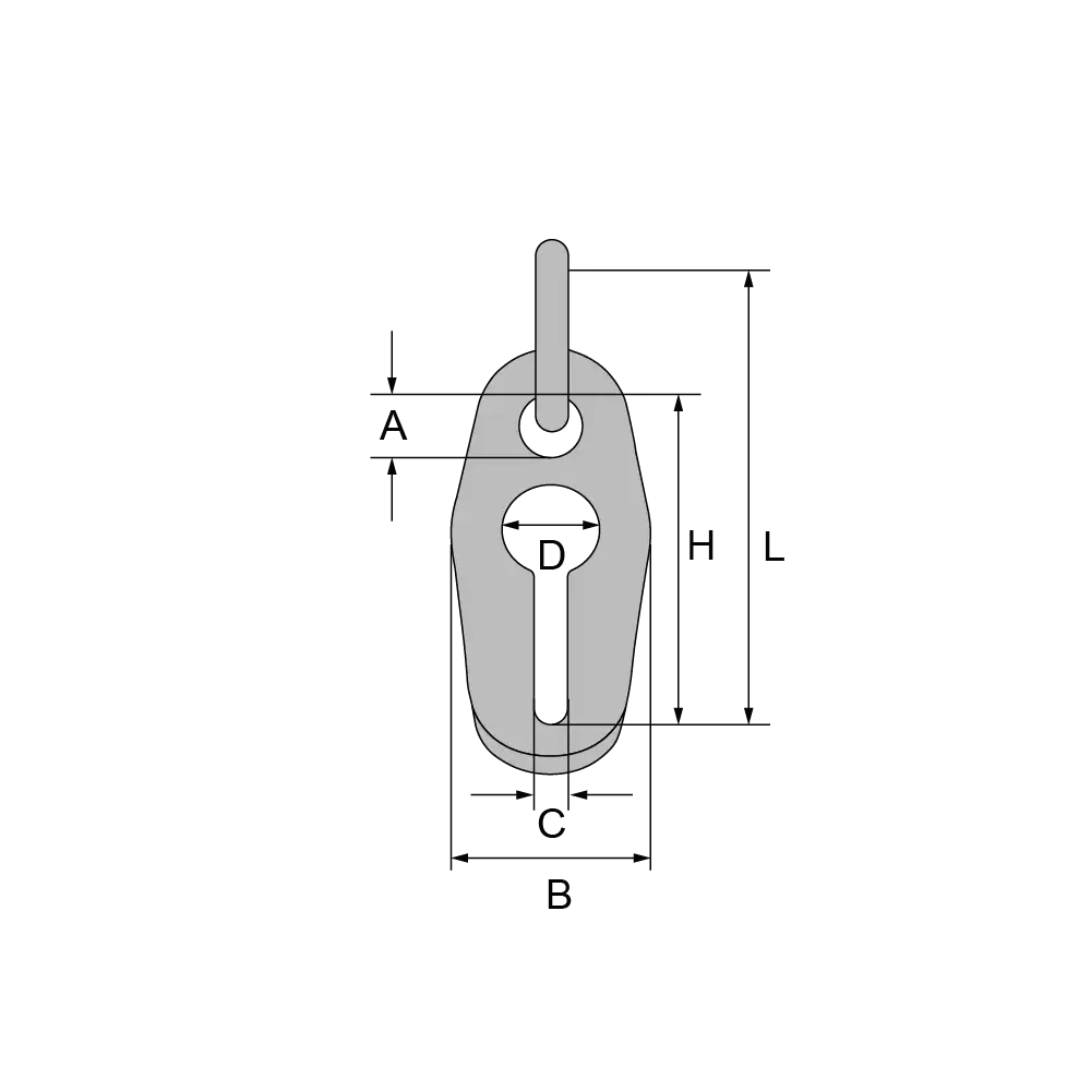 Artikel | für Kette mm | Tragfähigkeit kg | L | B | A | H | C | D | Gewicht kg |