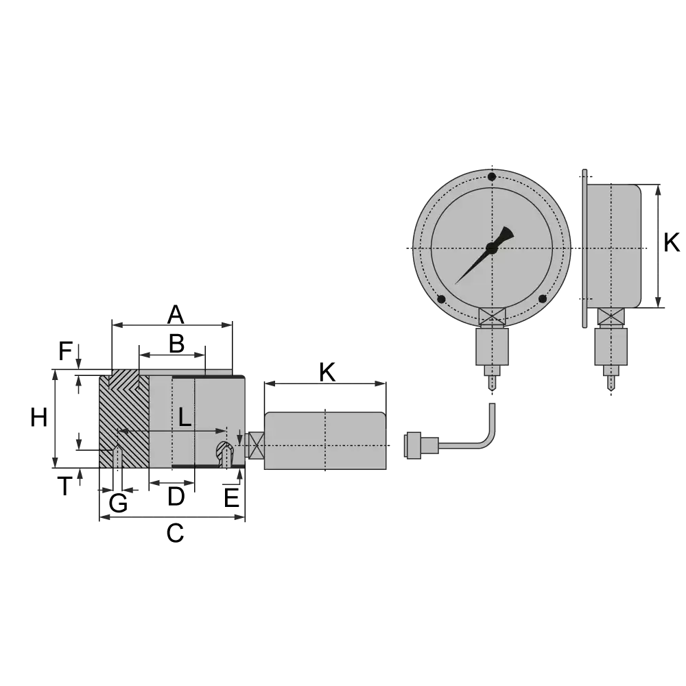 Zentrumloch 60 mm, 2,5 kN - 600 kN, Manometer 100 mm | ||||||||||||||
