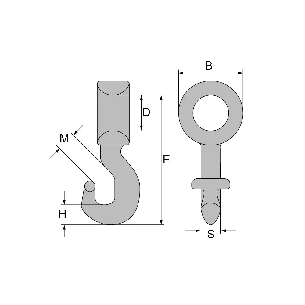 Artikel | für Kette mm | Tragfähigkeit kg | B | D | E | H | M | S | Gewicht kg |