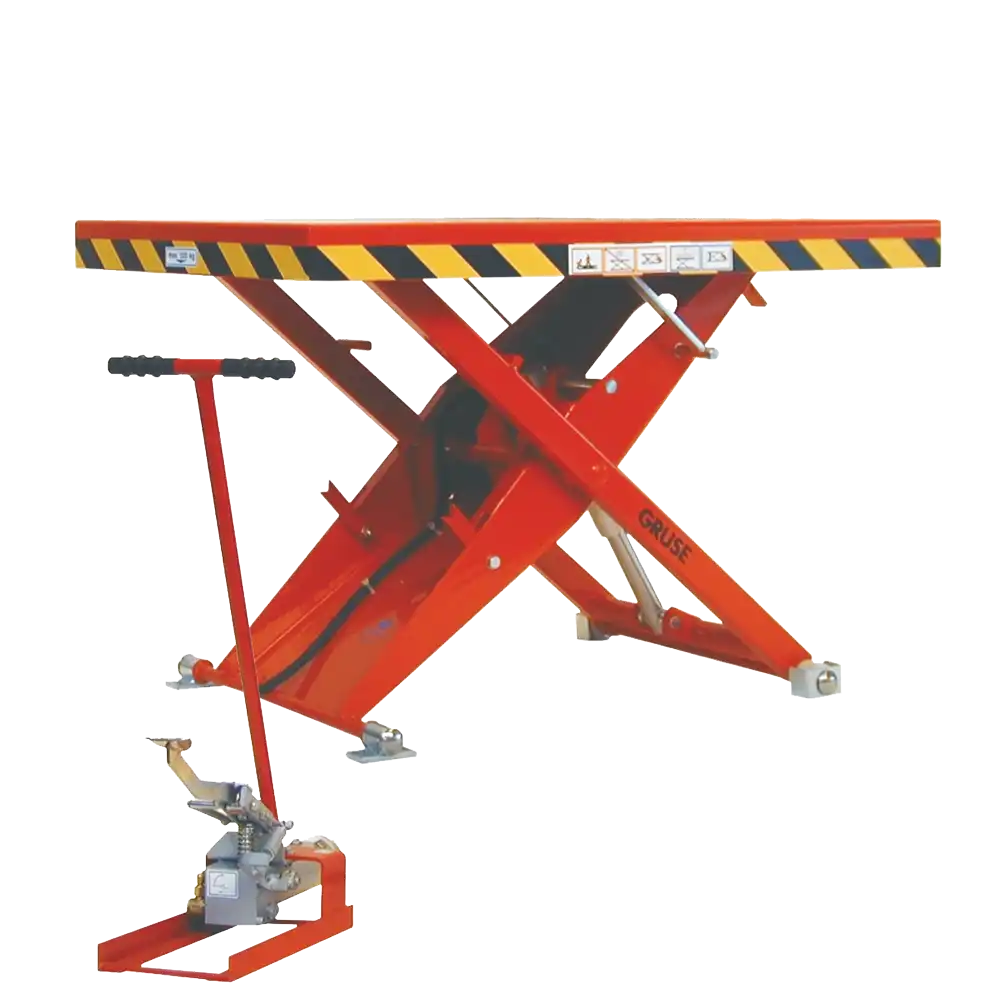 Die Lieferung erfolgt komplett und einsatzfertig inkl. Ölfüllung. Der Tisch kann durch einseitiges Anheben auf den eigenen Scherenrollen verfahren