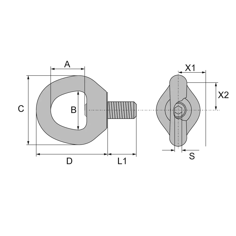 Artikel | Gewinde M | L1 | X1 | X2 | S | A | B | C | D | Gewicht kg |