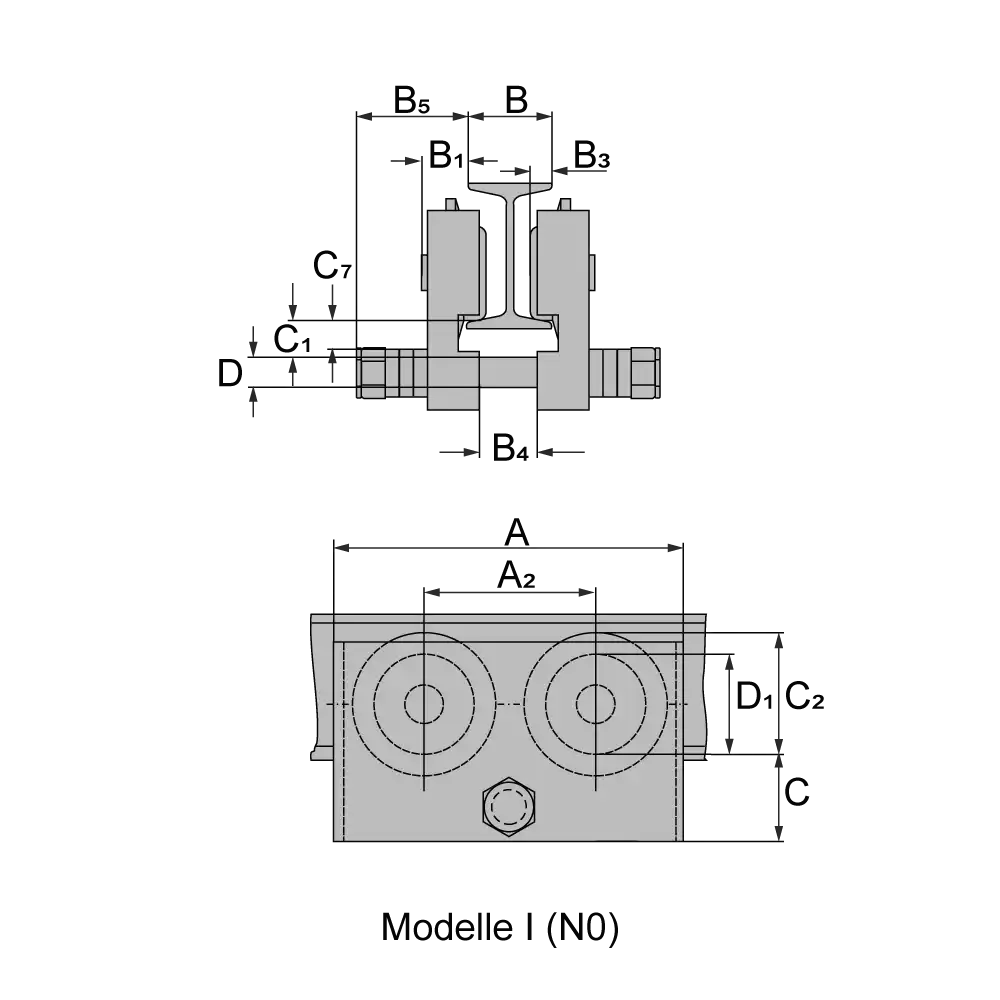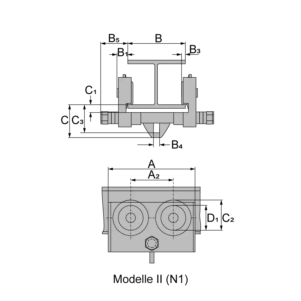Artikel | Tragfähigkeit kg | Flanschbreite mm | Flanschbreite* mm | kleinste Bauhöhe mm | Gewicht kg | Gewicht* kg |