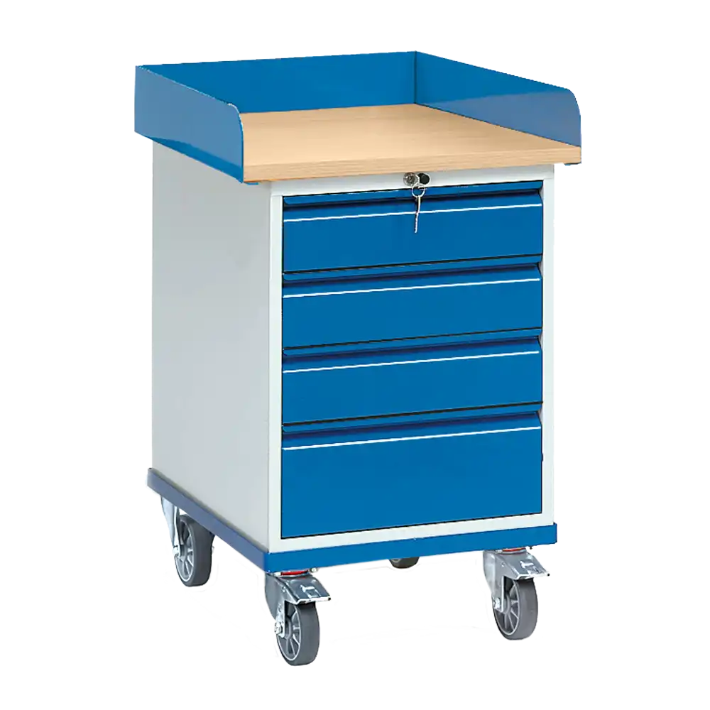 zentral verschließbar, Kugelauszug, Auszugsperre, 3-seitigem Abrollrand aus pulverbeschichtetem Stahlblech, Höhe 80 mm