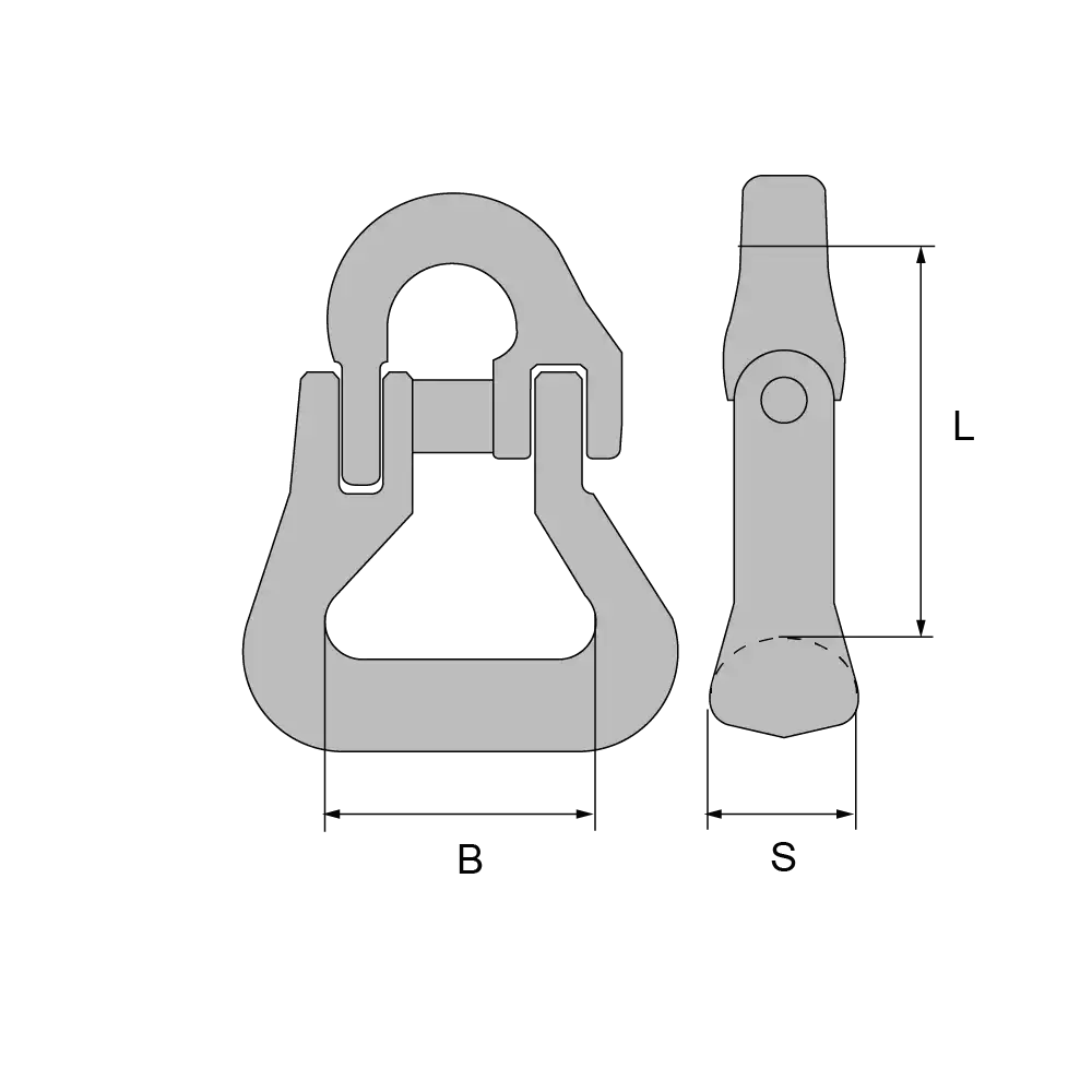 Artikel | für Kette mm | Tragfähigkeit kg | L | B | S | Gewicht kg |