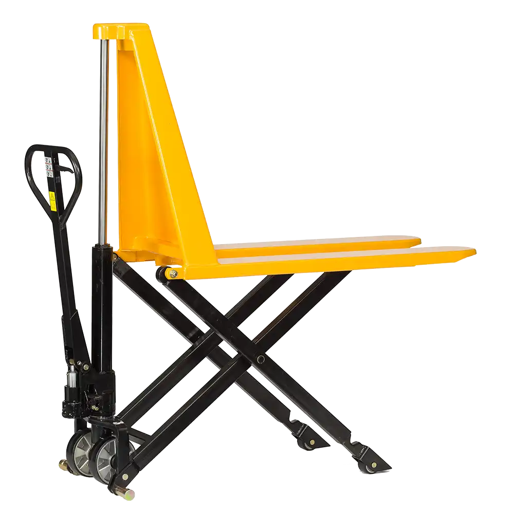 Rahmen und Gabel in verwindungsfreier Schalenbauweise. Stabile Stahlrohrdeichsel mit Gegenlager für Schubbetrieb in schwarz pulverbeschichtet. Bedienhebel für die Funktionen: Fahren, Heben und Senken.