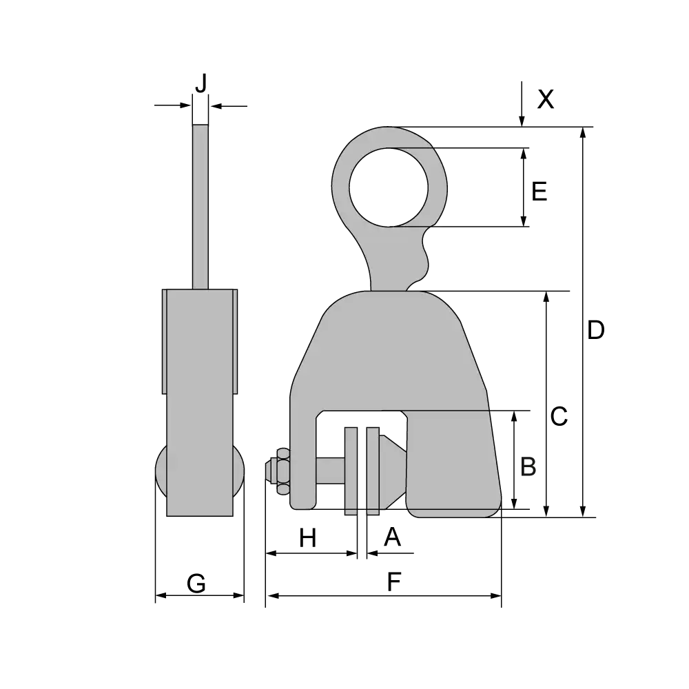 Artikel | Tragfähigkeit kg | Greifweite (A) | B | C | D | E | F | G | H | J | X | Gewicht kg |