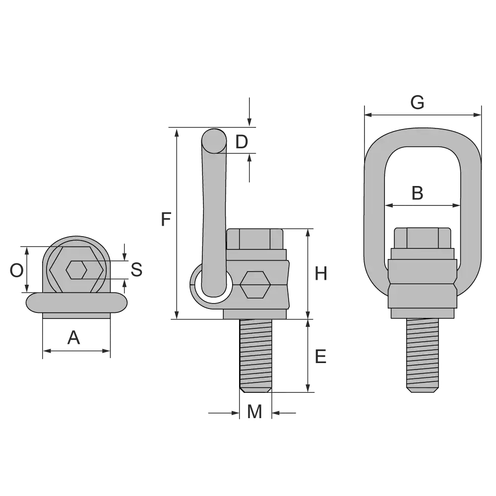 Artikel | Gewinde M | B | E | A | G | D | F | H | S | O | Gewicht kg |
