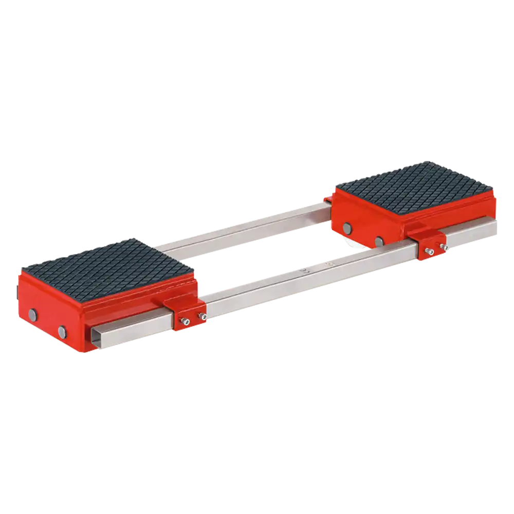 * Werden beide Transportfahrwerke zusammen verwendet, kann die Tragfähigkeit addiert werden. Diese Gesamttragfähigkeit setzt allerdings gleichmäßige Lastverteilung und ebenen Boden voraus. Muss bei einem Transport mit Schwerpunktveränderungen gerechnet werden empfehlen wir, die Fahrwerke so auszuwählen, dass eine Fahrwerkseinheit die gesamte Last tragen kann.