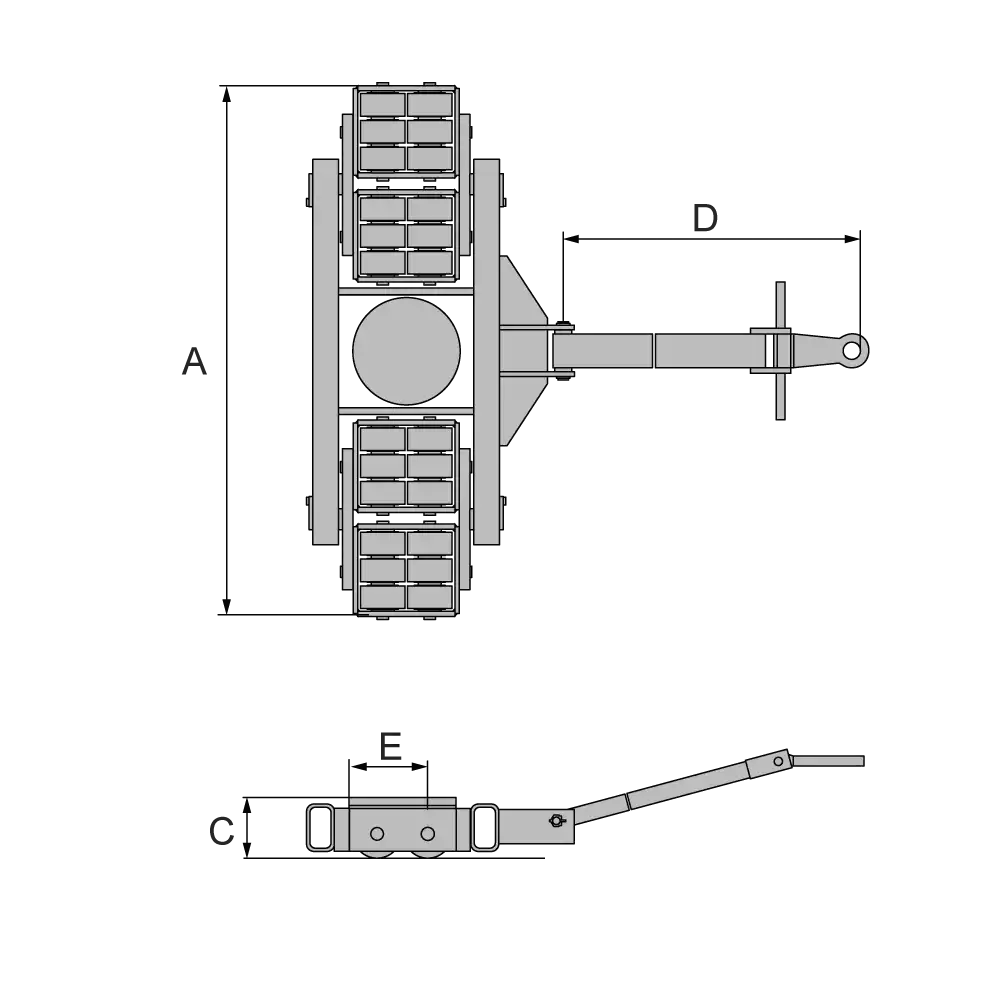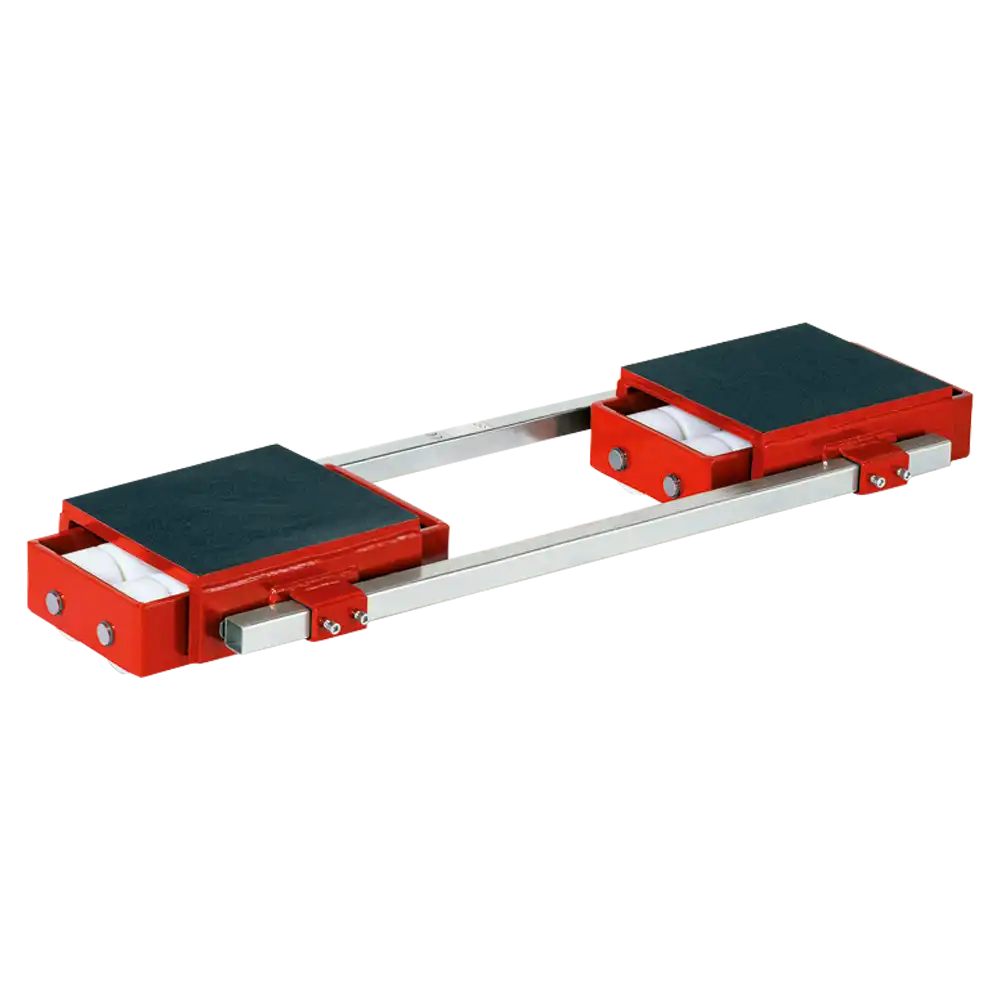 * Werden beide Transportfahrwerke zusammen verwendet, kann die Tragfähigkeit addiert werden. Diese Gesamttragfähigkeit setzt allerdings gleichmäßige Lastverteilung und ebenen Boden voraus. Muss bei einem Transport mit Schwerpunktveränderungen gerechnet werden empfehlen wir, die Fahrwerke so auszuwählen, dass eine Fahrwerkseinheit die gesamte Last tragen kann.