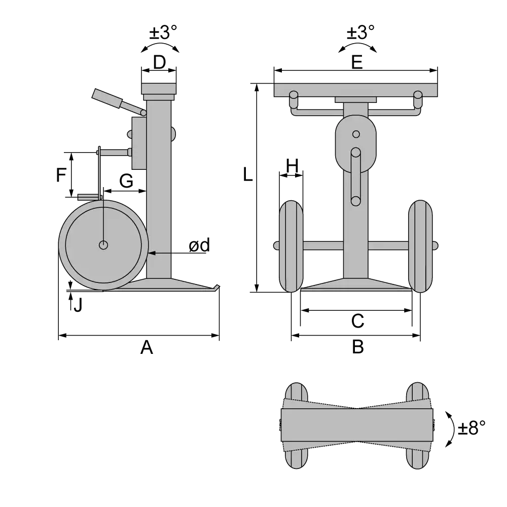 Artikel | Tragfähigkeit | Hub | A | B | L | C | D | E | F | G | H | J | Ød | Kurbeldruck | Hubweg * | Hubweg * | Gewicht |