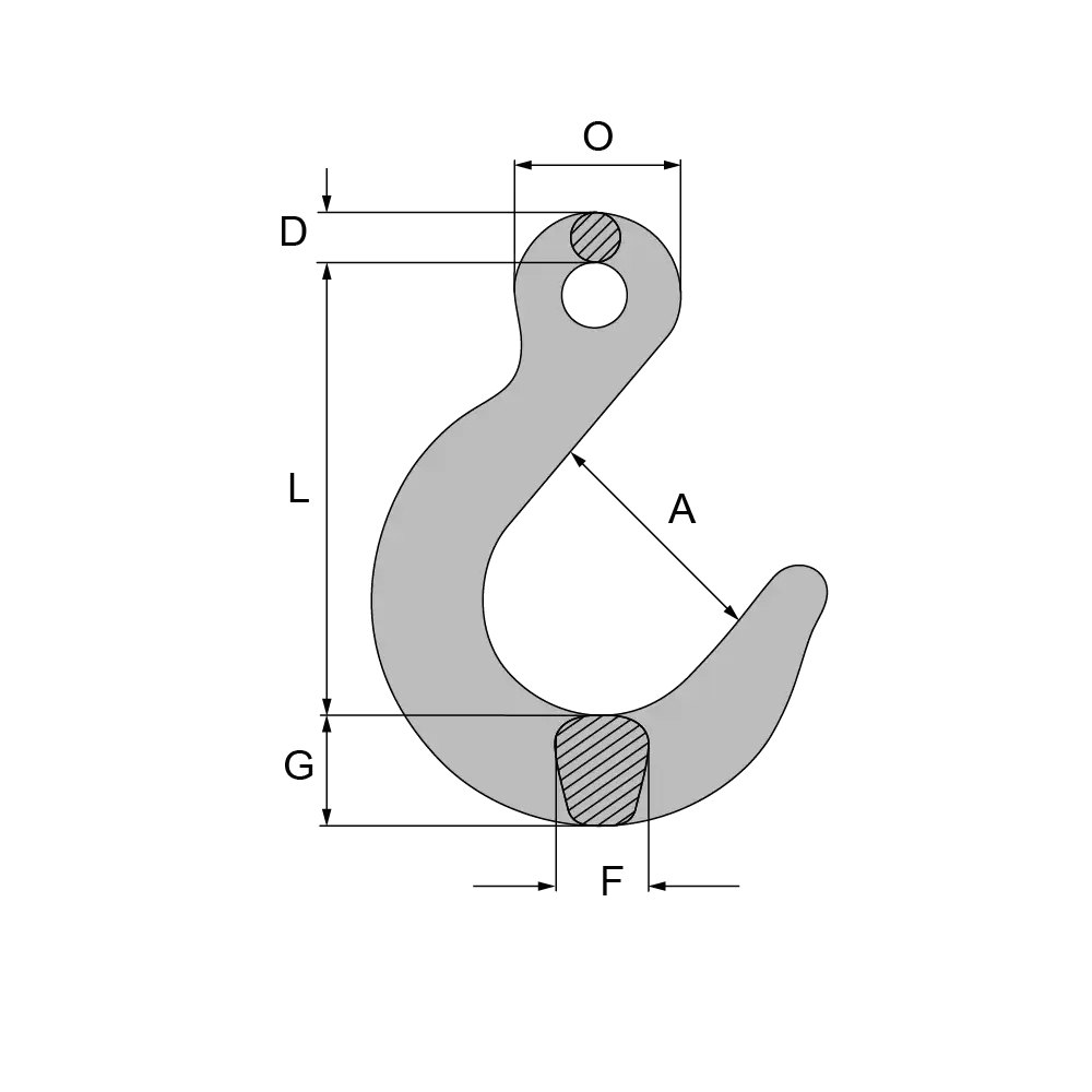 Artikel | für Kette mm | Tragfähigkeit kg | L | A | D | F | G | O | Gewicht kg |