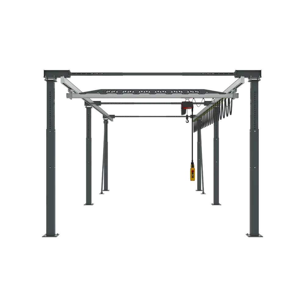 Das Leichtkransystem PA400 ist ideal zur Verknüpfung mehrerer Arbeitsplätze geeignet, benötigt nur wenig Aufstellfläche und belastet die Hallenkonstruktion nicht.